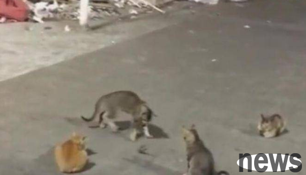 The mouse surrounded by stray cats was so scared that it was trembling. It squatted in place, not daring to move at all? But the stray cat did not do anything to the mice, but wanted to continue playing with them. When the cats saw that the cats did not respond, they were about to take advantage of this opportunity to escape, but one of the stray cats caught him. The cat: Don't leave, play with the big brothers for a while.
