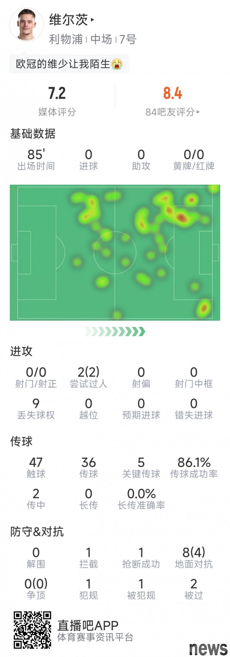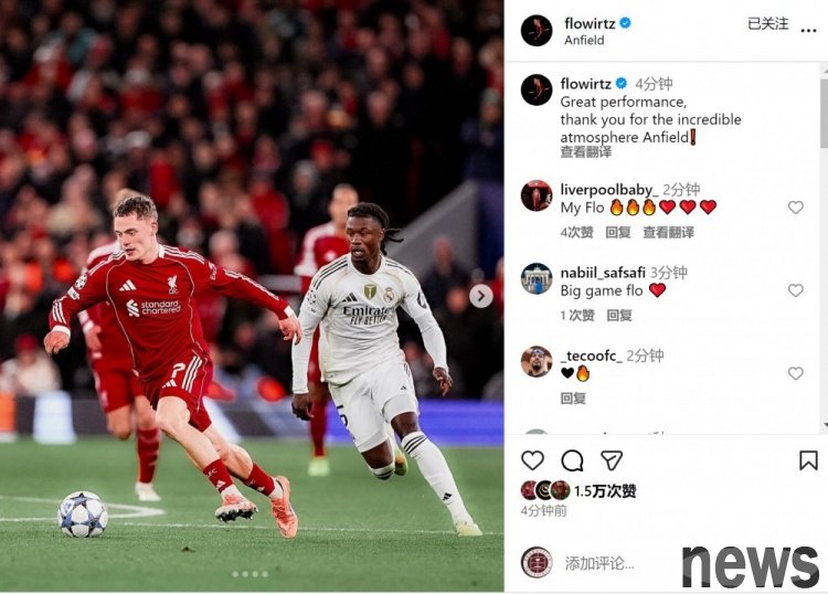In the fourth round of the Champions League, Liverpool defeated Real Madrid 1-0 at home. In this campaign, Wirtz started the game for Liverpool and sent 5 key passes. After the game, he posted photos of the game on social media and wrote: Wonderful...