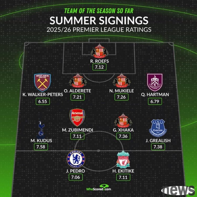 After 7 rounds of the Premier League, WhoScored selected the best 11-man lineup composed of new players this summer, and three Sunderland players were selected (the data is league data). Goalkeeper: Rovers (Sunderland, 3 clean sheets in 7 games) Def...