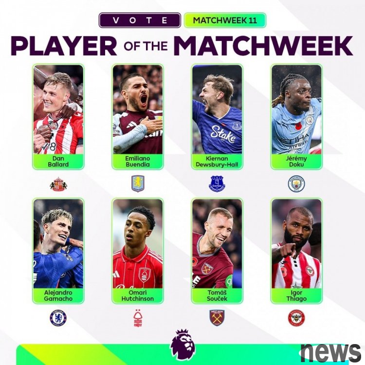 The 11th round of the Premier League has been completed. The Premier League official also listed a list of 8 candidates for the best player in this round, led by Ganacho and Doku. Premier League official 11th round best player candidate list: Dan Ba...